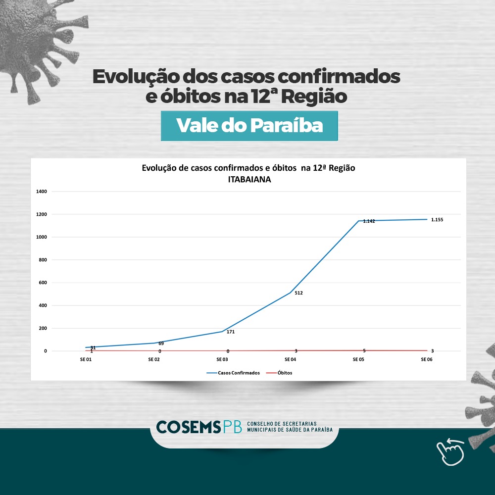 O boletim semanal das Regiões de Saúde em Tempos de Pandemia foi publicado nesta sexta-feira (18) pelo COSEMS-PB com os gráficos da evolução de casos confirmados de Covid-19 e óbitos, que foram registrados nas regionais de todo o Estado da Paraíba.